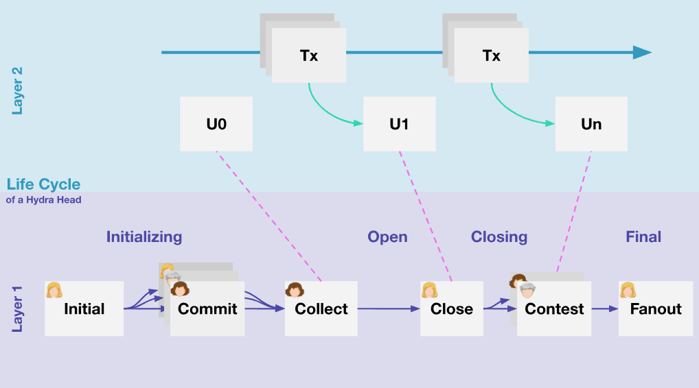 Hydra Head là một mô hình off-chain scaling trên Cardano, nơi các giao dịch được thực hiện ngoài blockchain nhưng vẫn đảm bảo tính nhất quán và an toàn. Mỗi Hydra Head vận hành theo một chuỗi trạng thái tuần tự, từ khi khởi tạo cho đến khi hoàn tất settlement trên blockchain. Hiểu rõ vòng đời này là chìa khóa để vận hành Hydra Node hiệu quả và xử lý các sự cố nhanh chóng.